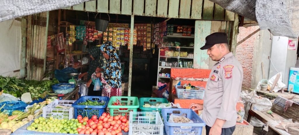LHOKSEUMAWE – Personel Polsek Kuta Makmur turun ke pasar Keude Blang Ara, Kecamatan Kuta Makmur, Aceh Utara, wilayah hukum Polres Lhokseumawe, Senin (19/6/2023), kegiatan ini guna memastikan persediaan barang sembako stabil menjelang Idul Adha 1444 H.