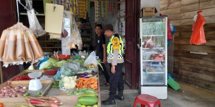 LHOKSEUMAWE – Personel Polsek Kuta Makmur turun ke pasar Keude Blang Ara, Kecamatan Kuta Makmur, Aceh Utara wilayah hukum Polres Lhokseumawe, Jumat (15/12/2023). Selain itu, personel juga memantau persediaan sembako.