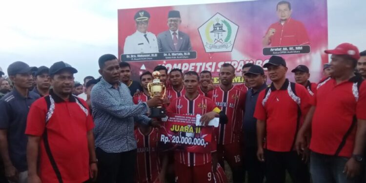 ACEH UTARA – Ketua DPRK Aceh Utara, Arafat Ali secara resmi menutup turnamen sepak bola antar kecamatan di.laoanagan bola kaki Kuta Makmur, Aceh Utara, Rabu (6/12/2023) sore.