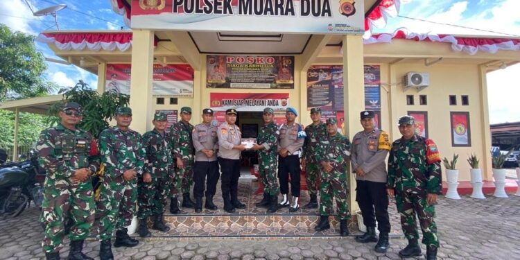 Kedatangan Peltu Ergita yang juga turut didampingi anggota Posramil Muara Dua lainnya disambut langsung Kapolsek Muara Dua, Ipda Roni, SH bersama personel.