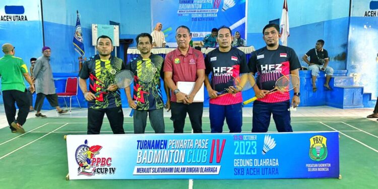 LHOKSEUMAWE – Dua tim ganda putra dari Persatuan Wartawan Indonesia (PWI) Aceh Utara berlaga di turnamen Pewarta Pase Badminton Club (PPBC) CUP IV, turnamen tersebut berlangsung di gedung BKPSDM Aceh Utara di Lhokseumawe, Jumat (27/10/2023).