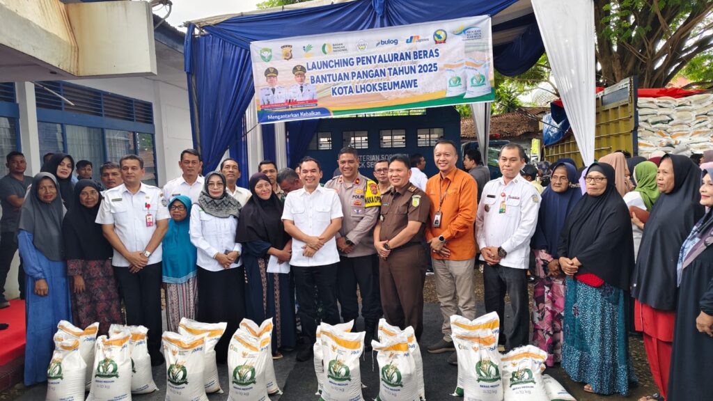 Lhokseumawe – Wakapolres Lhokseumawe Kompol Salmidin, S.E., M.M menghadiri kegiatan Launching Penyaluran Beras Program Bantuan Pangan (PBP) Kota Lhokseumawe tahun 2025 yang digelar di Kantor Dinas Sosial, Jalan T. Hamzah Bendahara, Desa Mon Geudong, Kecamatan Banda Sakti, Rabu (16/7/2025) pagi.