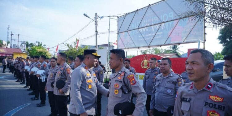 Lhokseumawe — Wakapolres Lhokseumawe Kompol Salmidin, S.E., M.M. melakukan pengecekan sikap tampang personel di jajaran Polres Lhokseumawe, Senin (28/7/2025). Kegiatan ini didampingi oleh Kasi Propam AKP J. Situmorang beserta anggota.