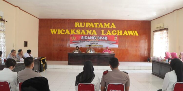 Lhokseumawe – Polres Lhokseumawe melaksanakan Sidang Badan Pembantu Penasehat Perkawinan, Perceraian, dan Rujuk (BP4R) bagi tiga personel yang akan melangsungkan pernikahan di Aula Serbaguna Polres Lhokseumawe, Jumat (19/9/2025).