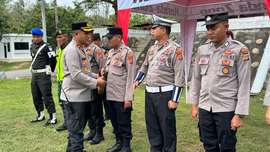 Lhokseumawe – Wakapolres Lhokseumawe, Kompol Salmidin, S.E., M.M., bersama Kasi Propam Polres Lhokseumawe, AKP J. Situmorang, melakukan pengecekan kesiapan personel di Pos Pengamanan (Pos Pam) Lebaran yang berlokasi di Bukit Rata, Sabtu (29/3/2025).