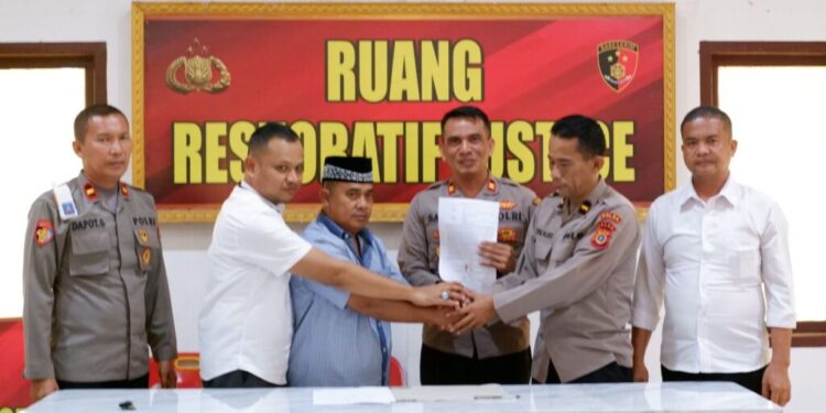 Aceh Utara – Polsek Baktiya Polres Aceh Utara menyelesaikan kasus Percobaan pembunuhan dan penganiayaan dengan cara keadilan restoratif atau Restoratif Justice. Senin (6/2/2023) Gedung sat reskrim polres Aceh Utara.
