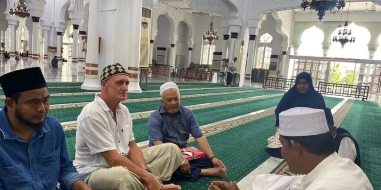 Banda Aceh — Seorang turis asal Australia Johnny Harry Preston (65) resmi memeluk agama Islam usai mengucapkan dua kalimat syahadat di Masjid Raya Baiturrahman, karena terinspirasi setelah membaca buku tentang kisah Rasulullah Shalallaahu Alaihi Wassalaam (SAW).