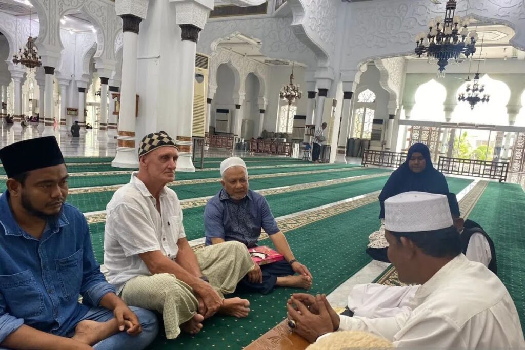 Banda Aceh — Seorang turis asal Australia Johnny Harry Preston (65) resmi memeluk agama Islam usai mengucapkan dua kalimat syahadat di Masjid Raya Baiturrahman, karena terinspirasi setelah membaca buku tentang kisah Rasulullah Shalallaahu Alaihi Wassalaam (SAW).