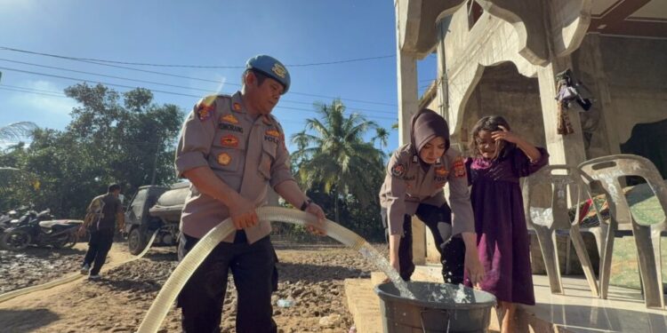LHOKSEUMAWE – Polres Lhokseumawe kembali menunjukkan kepeduliannya terhadap masyarakat dengan mendistribusikan air bersih bagi warga terdampak banjir di Kecamatan Sawang, Kabupaten Aceh Utara, minggu siang (30/11/2025).