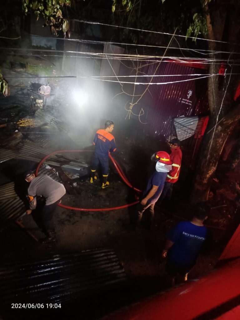 Menerima informasi tersebut, sebut Kapolsek, pihak kepolisian segera menghubungi petugas pemadam kebakaran dan bersama warga sekitar berusaha memadamkan api dengan peralatan seadanya.