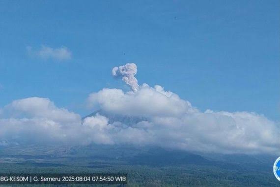 “Terjadi erupsi Gunung Semeru pada pukul 07.52 WIB. Tinggi kolom letusan teramati sekitar 800 meter di atas puncak atau 4.476 meter di atas permukaan laut (mdpl),” kata Petugas Pos Pengamatan Gunung Semeru, Mukdas Sofian, melalui keterangan resmi, Senin (4/8/2025).