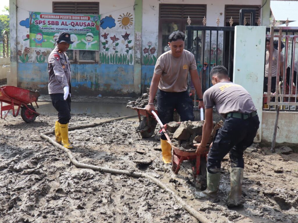 “Anak-anak adalah masa depan bangsa, sehingga ketersediaan tempat belajar yang bersih menjadi prioritas. Kami hadir di Aceh Utara untuk memastikan proses pendidikan di SPS Al-Qausar dapat kembali berjalan normal melalui bantuan tenaga dan semangat kepedulian dari personel kami,” ujar Kombes Pol. Andy Rifai.
