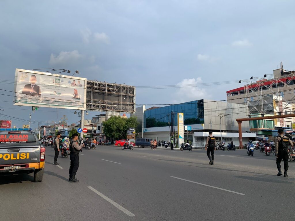 LHOKSEUMAWE – Tim Unit Reaksi Cepat (URC) Sat Samapta Polres Lhokseumawe mengatur arus lalu lintas di sejumlah titik persimpangan di wilayah Kota Lhokseumawe, Minggu (16/4/2023) sore, kegiatan ini guna memberi kenyamanan kepada pengguna jalan raya menjelang waktu berbuka puasa.